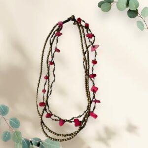 Rote Boho Knotted Stein Halskette
